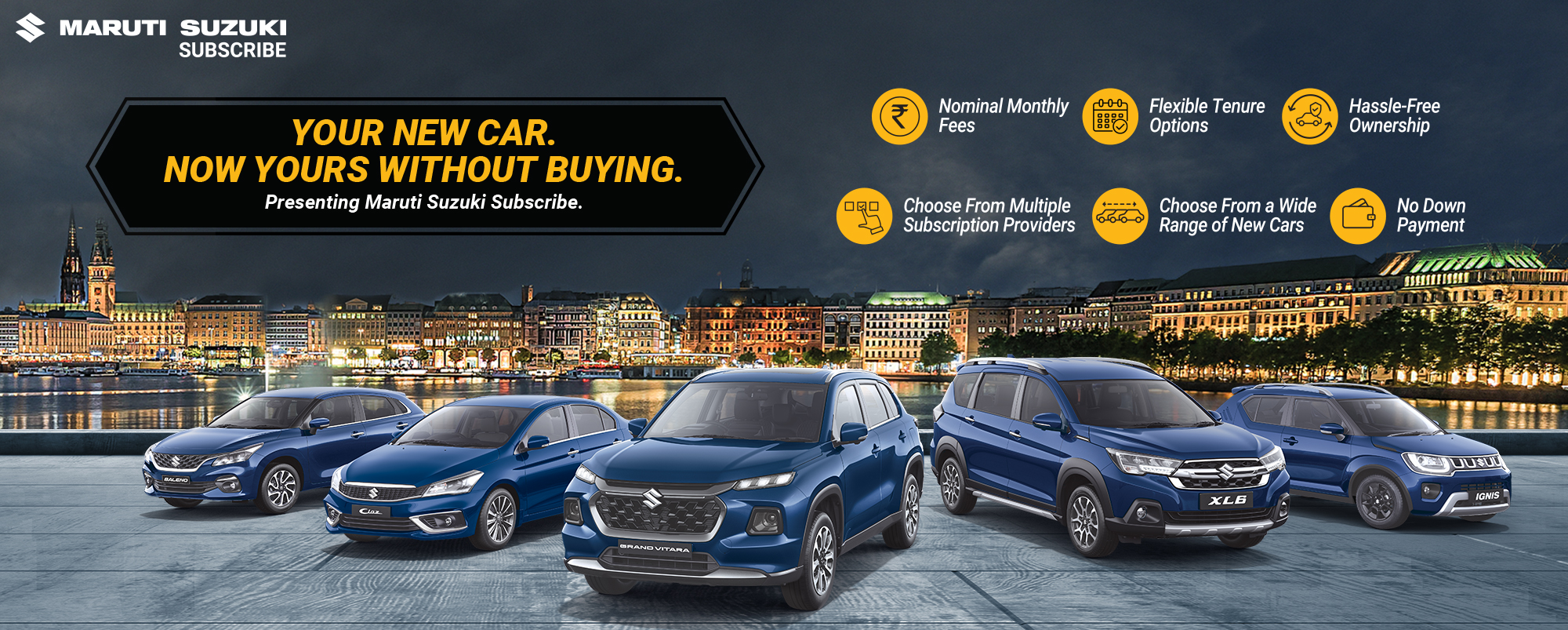Maruti Suzuki Subscribe enables all customers to enjoy driving their preferred Maruti Suzuki cars without having to deal with all the financial responsibilities that come with owning a car.All you need to do is opt for a monthly subscription plan at a fixed monthly fee, which includes the routine maintenance and insurance costs, and choose a flexible tenure. At KTL Automobiles in, Gomti Nagar, Lucknow, all Hatchback, Sedan, SUV, the MUV models line-up includes Baleno, Invicto, EVitara, Jimny, Ciaz, Ignis, Fronx, Grand Vitara, XL6. Here, you will enjoy Maruti Suzuki Subscribe benefits such as: